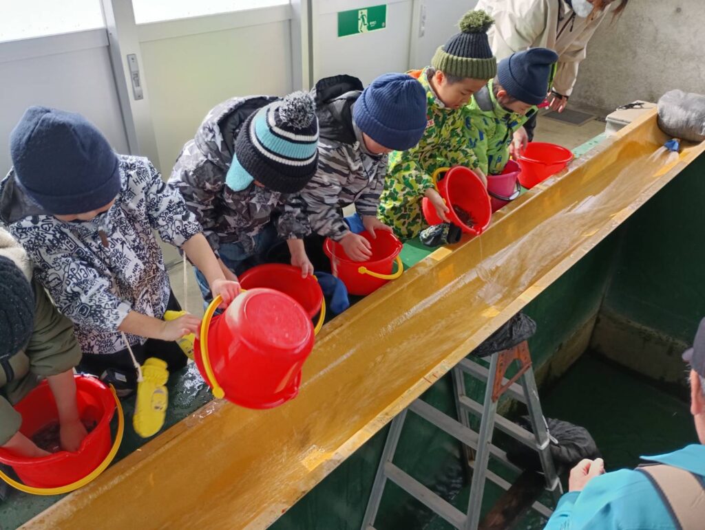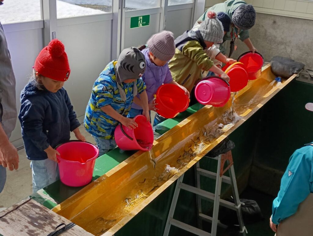 園児が鮭の稚魚を放流しました。2026.3.2