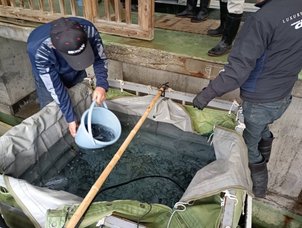 3月3日(火)、小国川漁協で鮎の中間育成が始まりました。